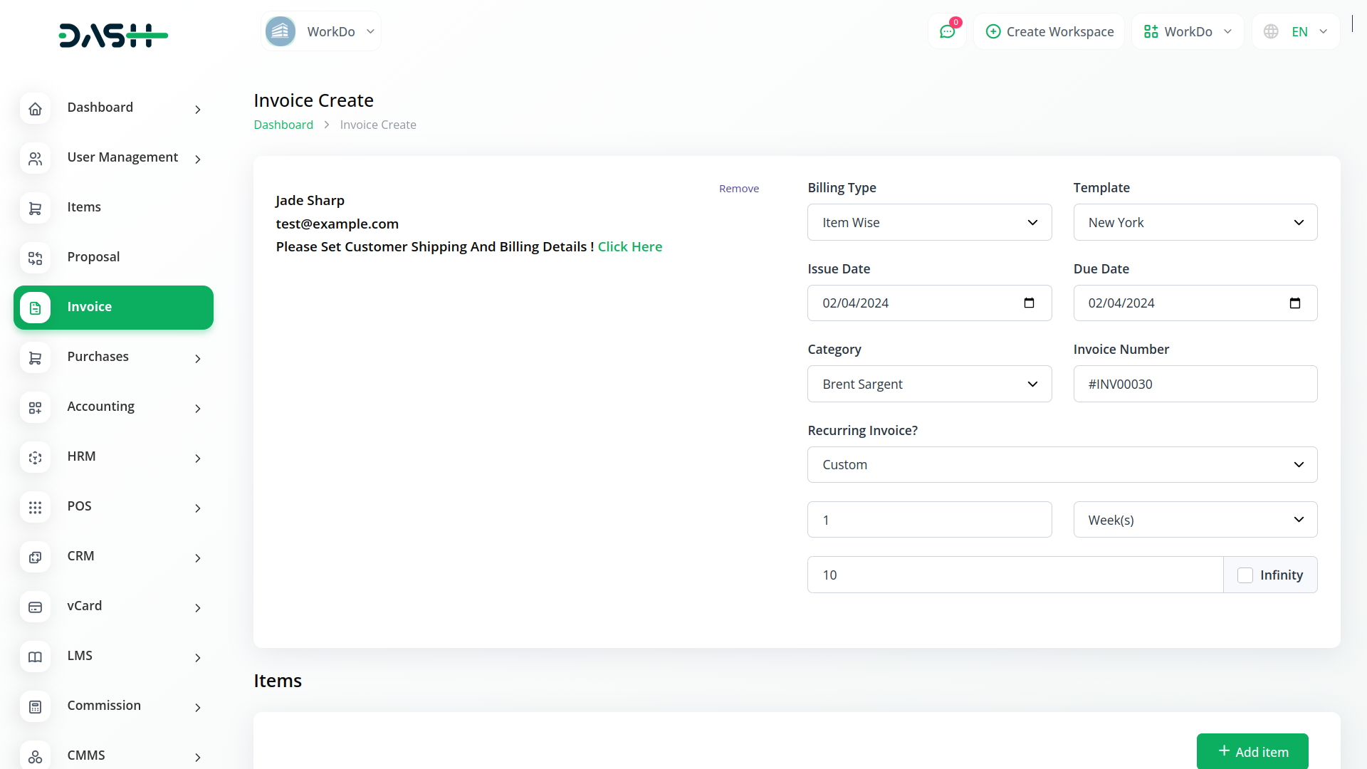 In conclusion, the Recurring Invoice/Bills Integration feature in Dash SaaS revolutionizes the way businesses manage their invoicing processes. With its intuitive interface, customizable recurrence options, and automation capabilities, Dash SaaS empowers businesses to streamline their billing operations and focus on driving growth and success. Whether you're a small startup or a large enterprise, Dash SaaS provides the tools you need to simplify invoicing and enhance efficiency. Experience the convenience and efficiency of automated recurring invoices with Dash SaaS today.