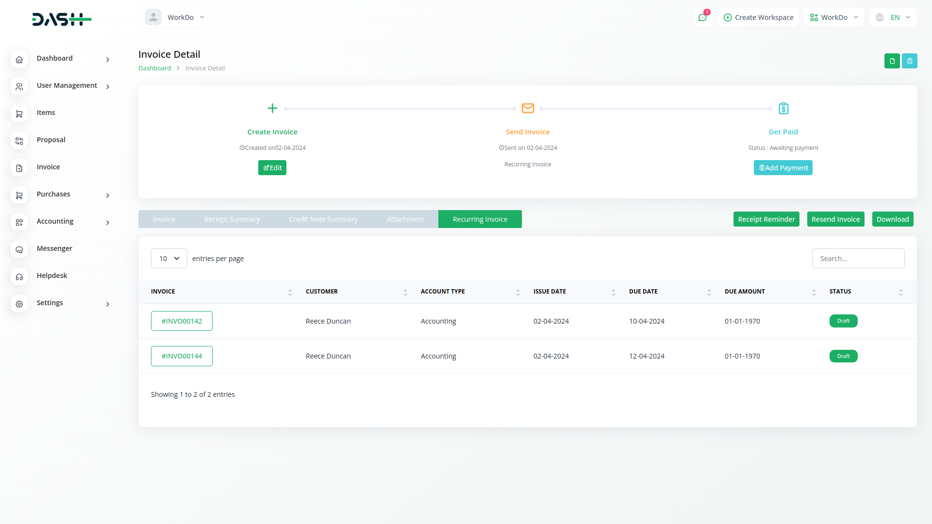 By automating the duplication of invoices/bills based on the specified recurrence period, Dash SaaS eliminates the risk of human error and ensures accuracy in billing.